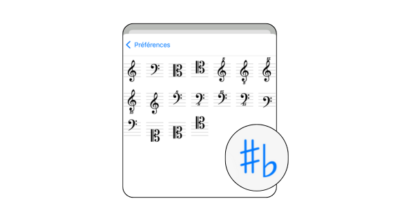Once the score has been live-scored, choose the key and clef; the rewriting is instantaneous.